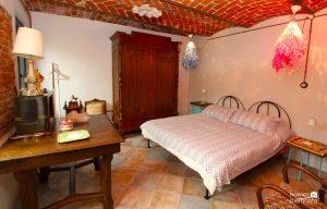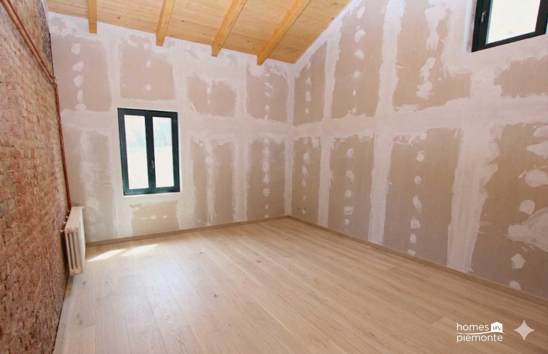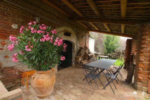 On the first floor you have two nice bedrooms with original floor tiles, vaulted ceilings and access to a typical Piemontese balcony. A third bedroom with a visible double height wooden roof construction has recently been added.  A compact and charming bathroom is also found on this first floor.